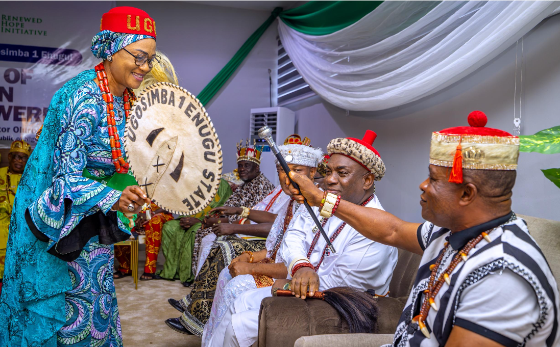Nigeria’s First Lady, Senator Oluremi Tinubu, has been conferred with the chieftaincy title of “Ugosimba 1 Enugu” by the Enugu State Traditional Rulers Council.
