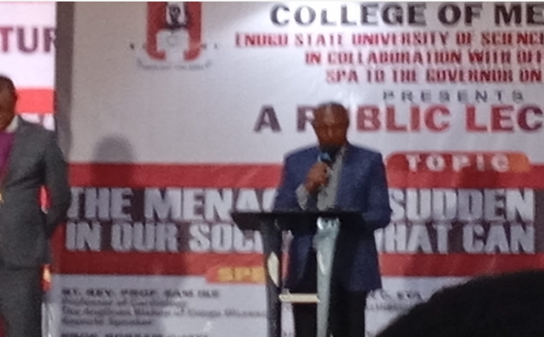 Worried about the increasing incidents of sudden death in the society, Enugu state government in collaboration with the College of Medicine, Enugu state University of Science and Technology,ESUT, Monday, held a public lecture on” Sudden death: Case presentation and post- event management” ,aimed at enlightening  the public on issues surrounding sudden death, preventive measures and post- management to reduce the increasing trend.