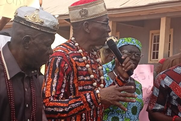 People of Ugwuaji Awkunanaw community , Enugu South local area in Enugu state,  have appealed  to Enugu state Governor, ,Dr. Peter Mbah to intervene and stop government officials from taking their ancestral lands in the name of urbanisation, lamenting that their children have no land left to build on. Pix: Ugwuaji Awkunanaw traditional ruler, HRH…